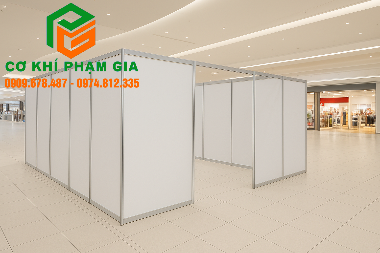 Thi công vách ngăn panel tại Bình Thạnh Trung tâm thương mại, siêu thị: phân chia gian hàng nhanh chóng.